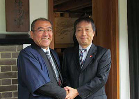 木下まち育て塾 伊藤哲之会長と握手